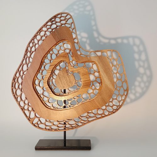 Murmures rassemble des sculptures en dentelle de bois aux formes libres, évoquant des présences discrètes, des mouvements intérieurs et des paysages suggérés.